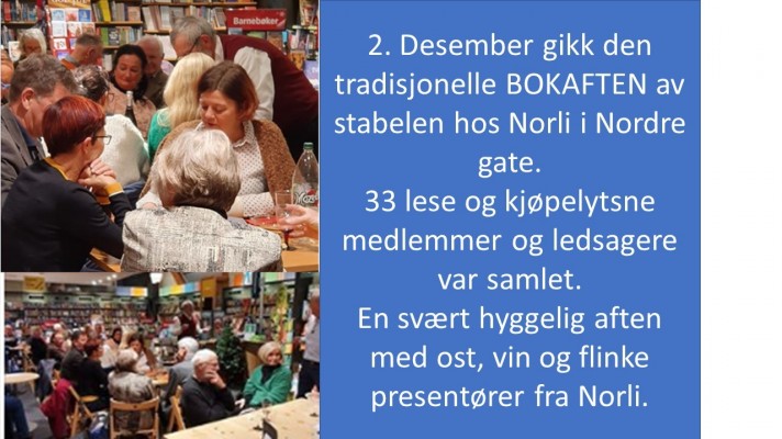 X antallmedlemmer og x gjester hadde møtt opp. En flott tradisjon hos Norli.