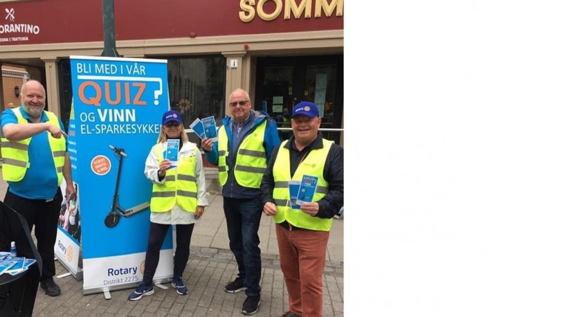 Denne lørdagen var det 3 medlemmer fra TRK (Kjetil, Sissel og John)samt et medlem fra Charlottenlund RK (Torstein Holm) som holdt stand på Nordre i anledning D2275 sin Rotary Quiz. Det var mange hyggelige folk å møte og alle fikk informasjon om Rotary, samt en mulighet til å vinne en EL-sparkesykkel ved å svare på en del spørsmål om Rotary