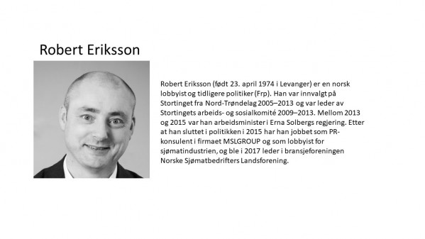 Foredrag : Robert Eriksson, administrerende direktør i Sjømatbedriftene.