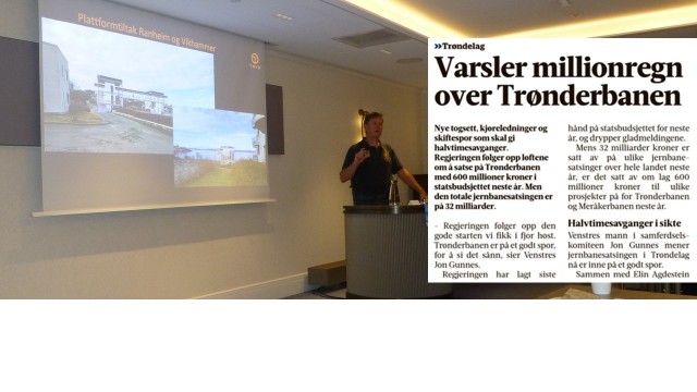Foredrag i dag av Utbyggingsdirektør Johan Arnt Vatnan: "Nye Veier i Trøndelag"