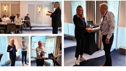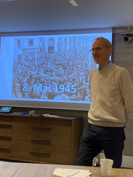Havnedirektør Knut Thomas Kusslid serverte Wienerbrød og kaffe og holdt et grundig og informativt foredrag om historien til Trondheim Havn fra 100 tallet og frem til i dag