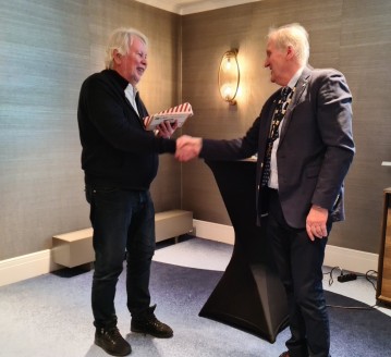Thomas Berg i Britannia fikk en gave som takk for møtelokaler i Tore sitt presidentår.